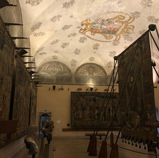 We visited the Sala delle Asse, a vaulted room in the Castello Sforzesco, which was originally decorated by Leonardo da Vinci and repainted during several restoration campaigns.